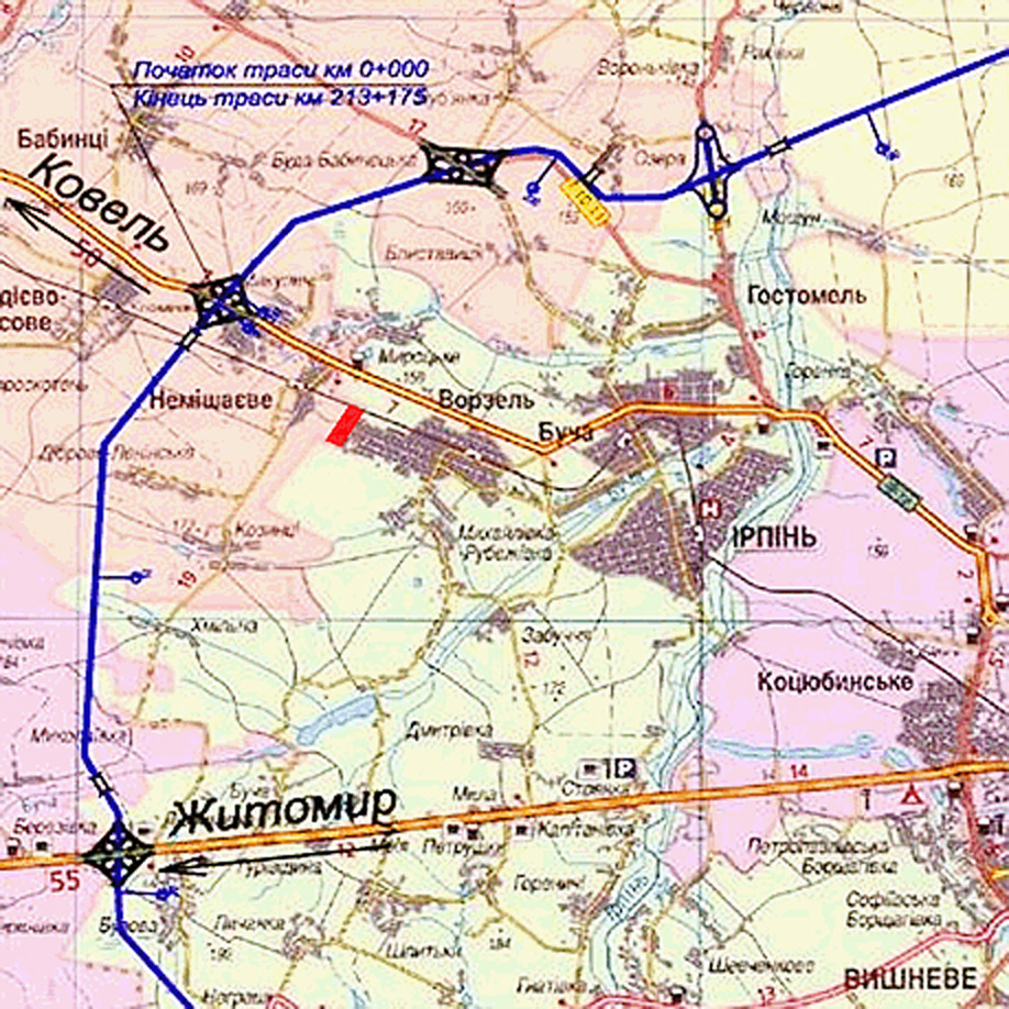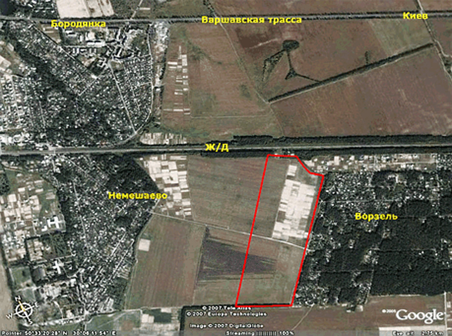 - Київська область, Бучанський район, на території сільської ради смт. Немішаєве, поза межами населеного пункту.