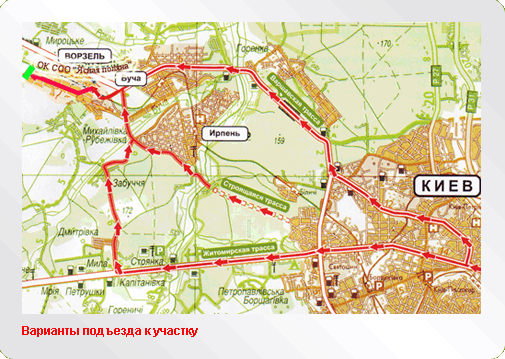 - на маршрутці № 424 від м. Святошин до кінцевої в п. Ворзель, а після 15 хвилин пішки до кооперативу;